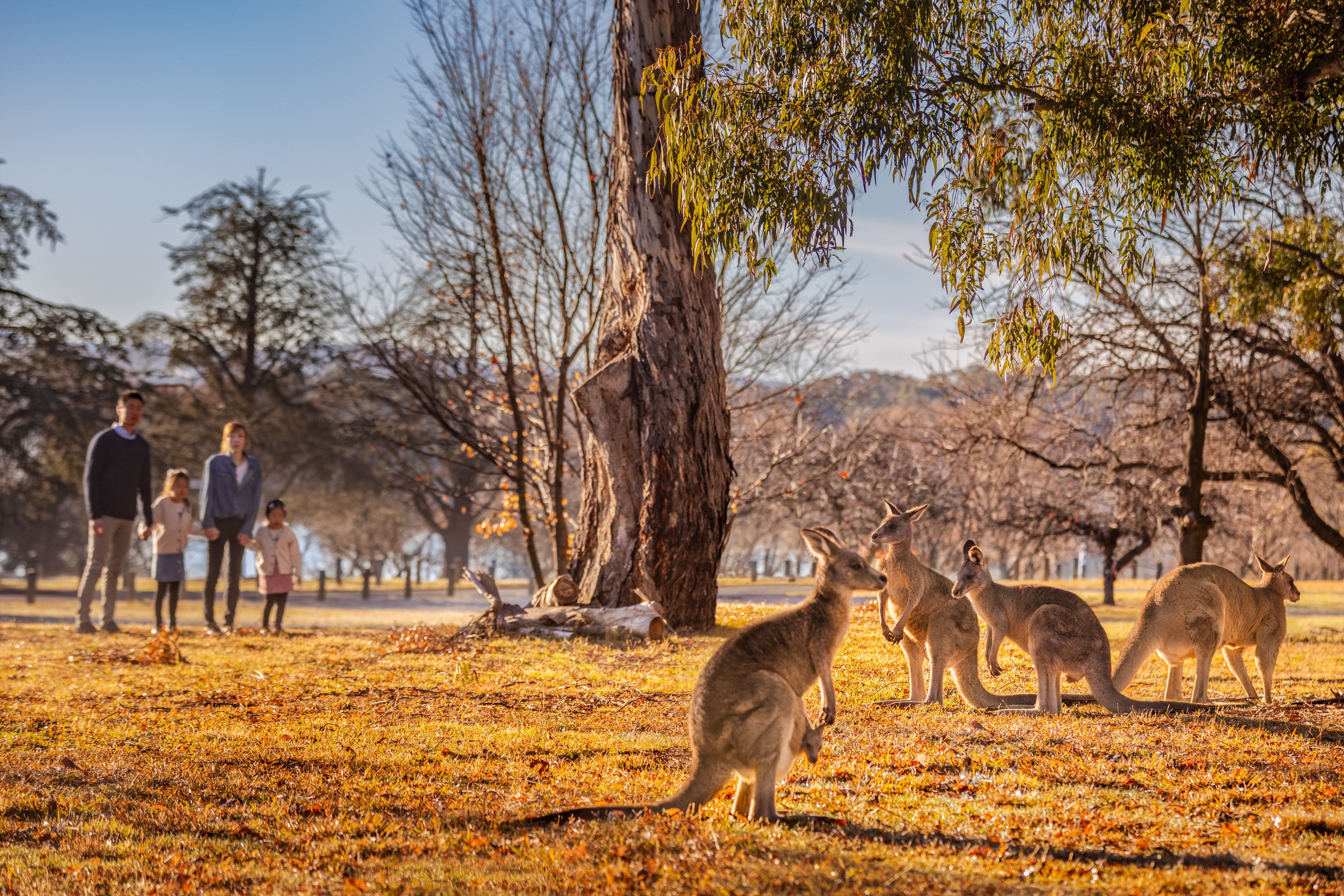 Experience the Australian bush within the city limits and spot kangaroos as they soak up the sun around the city’s central lake, Lake Burley Griffin. Book a guided tour with Canberra Guided Tours, offering curated experiences of the city and surrounding bushland.