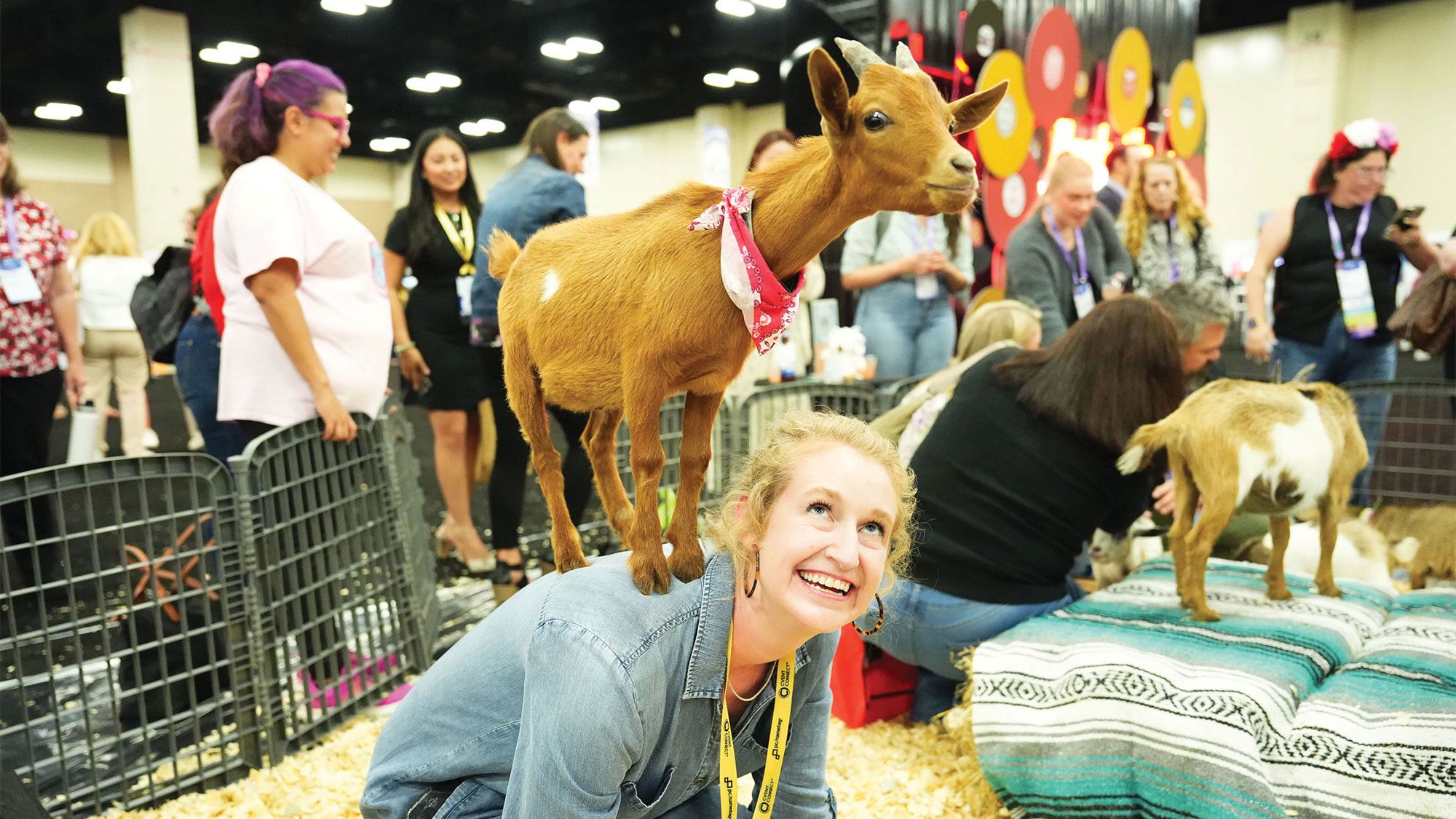 Cvent attendees take part in goat yoga. (Courtesy of Cvent)