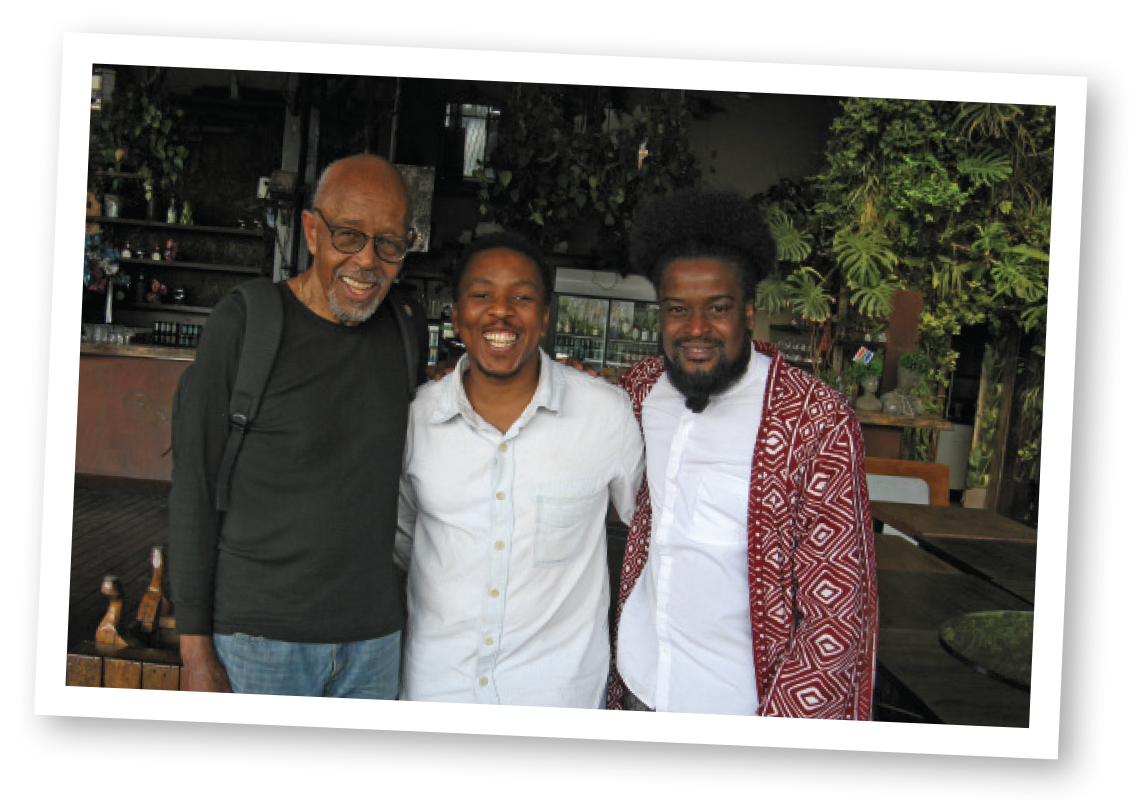 J. Robert Harris, left, with Wonke Nqevu and Bongani King at the Living Room cafe in Johannesburg's Maboneng Precinct. (Courtesy of J. Robert Harris)